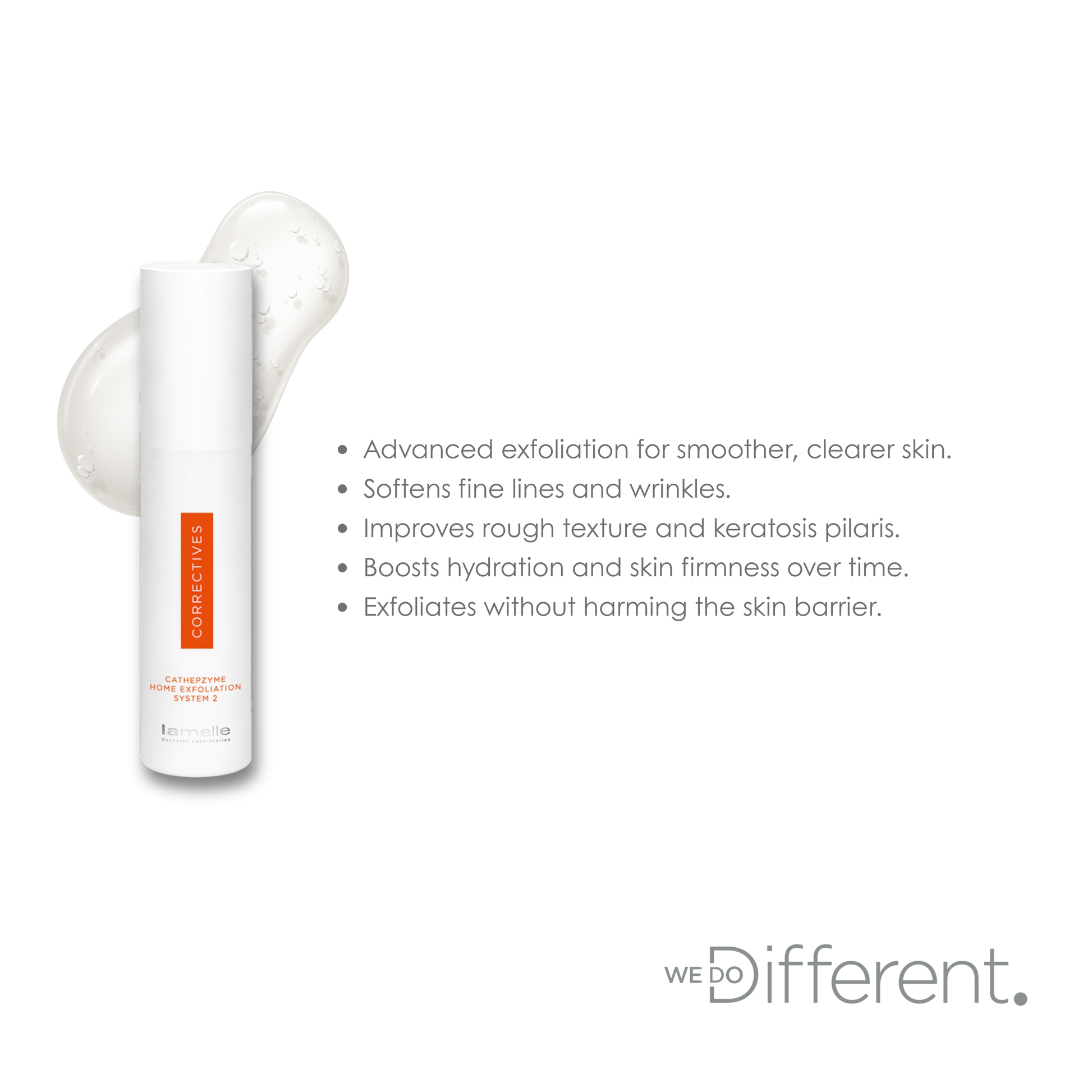 A high-strength enzymatic exfoliator designed for experienced users or those with resilient skin. With a higher concentration of Cathepsin D, it effectively increases natural skin cell turnover, smooths rough texture, and softens fine lines all without damaging the skin barrier. Clinically proven to improve conditions like Keratosis Pilaris, Cathepzyme 2 delivers powerful yet safe exfoliation. With continued use, skin shows up to 50% better shedding, 39% improved hydration, and becomes 35% firmer over time. Use two to three times weekly to reveal clearer, more radiant skin. Ideal for those seeking advanced exfoliation and visible anti-ageing results.