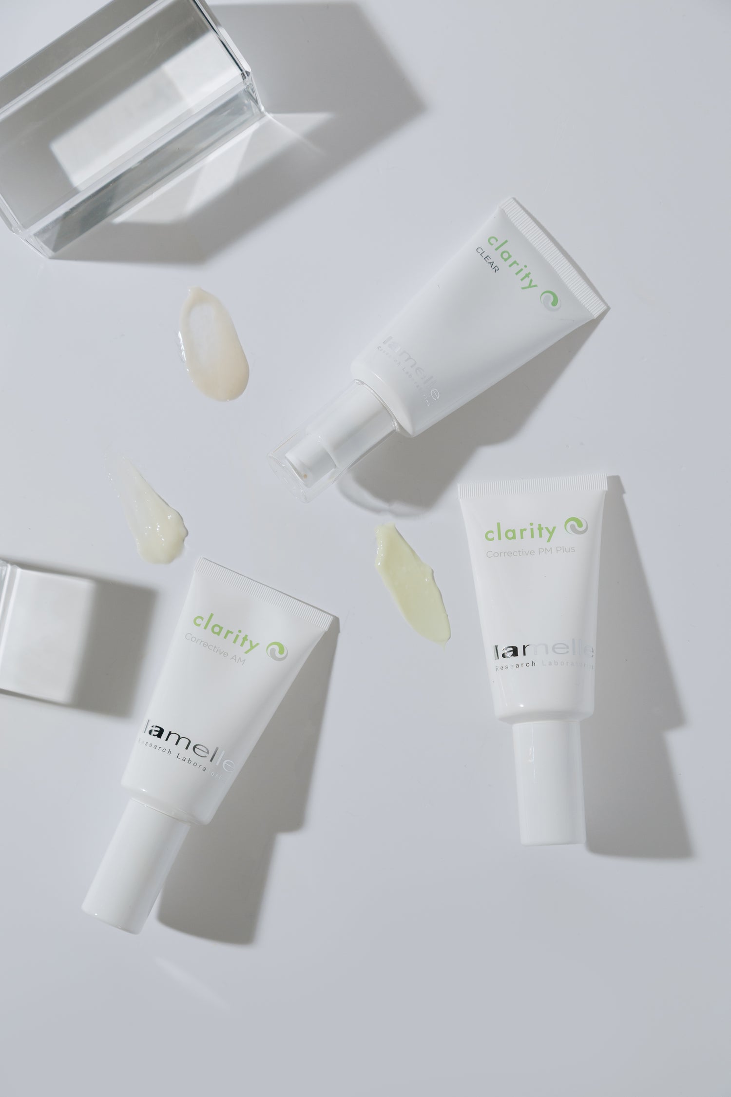 Wake up to balanced, healthier-looking skin with Clarity Corrective PM Plus. A powerful night cream designed for acne-prone and sensitive skin. It combines water-soluble salicylic acid with anti-inflammatory rosemary and witch hazel extracts to soothe and calm skin overnight. Enhanced with cedar bark extract (Hinokitiol) for antibacterial action and nobiletin to regulate sebum production, this formula supports clearer skin. Featuring a patented, non-irritating retinoid (Vitamin A), it normalises cell turnover without dryness or irritation, making it safe for even the most sensitive skin types.
