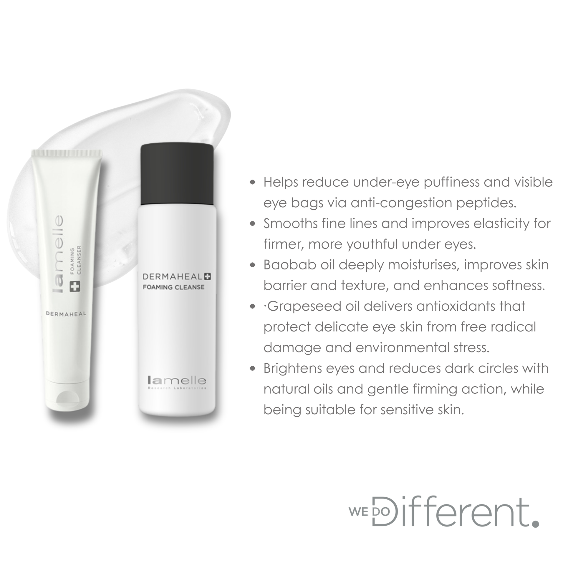 - Helps reduce under-eye puffiness and visible eye bags via anti-congestion peptides.