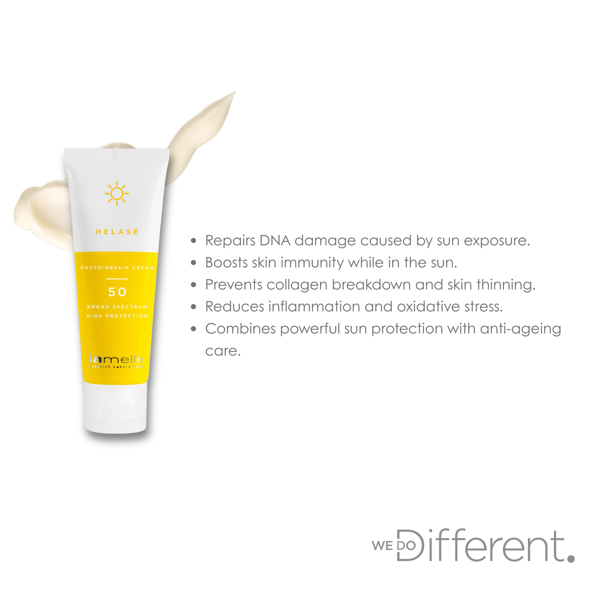 A revolutionary, full-spectrum SPF 50 sunscreen that goes far beyond traditional sun protection. In addition to broad-spectrum UVA and UVB defence, it features cutting-edge actives like an AhR blocker to prevent collagen breakdown, photolyase enzymes to repair sun-induced DNA damage, and 80GG-1 to support skin immunity. A TRPV1 blocker reduces oxidative stress, while the powerful antioxidant Pycnogenol® neutralises free radicals and reduces inflammation, slowing visible signs of ageing. Helase 50+ not only protects but actively repairs, making it the ultimate upgrade for anyone serious about anti-ageing, skin health, and advanced sun protection.